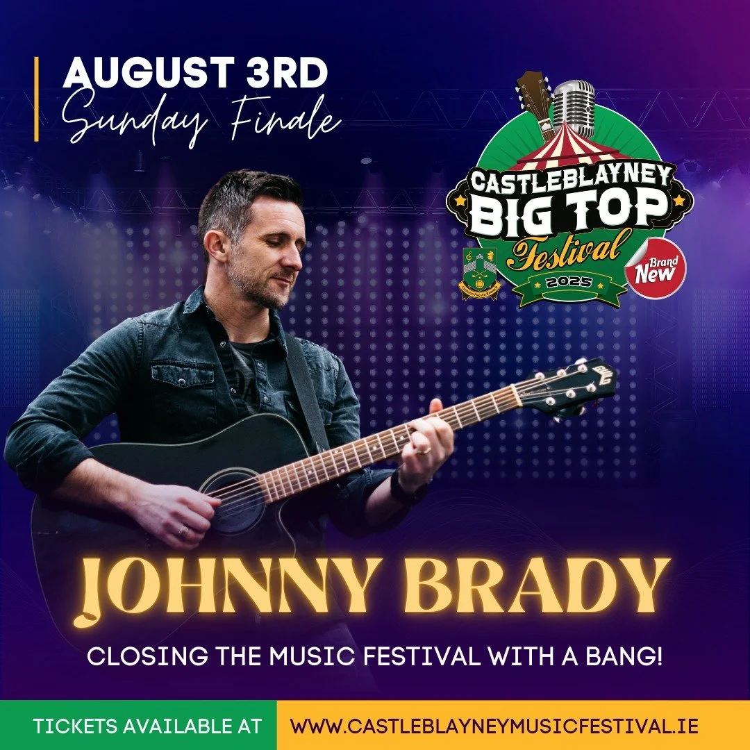 Closing the festival in style, Johnny Brady brings his powerhouse vocals and signature energy to the Castleblayney Music Festival stage. One of the most recognised voices in modern Irish country music, Johnny continues to push boundaries with his fresh sound and vibrant performances.